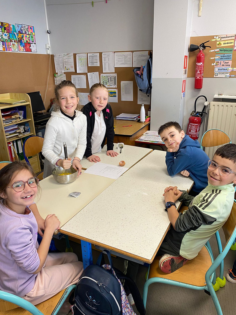 Comme chaque fin de mois, les élèves de CE1-CE2 passent en cuisine pour célébrer les anniversaires. Pour le mois de février, ils ont préparé de délicieux cakes au yaourt ainsi que des cakes aux pépites de chocolat, pour le plus grand plaisir de tous !